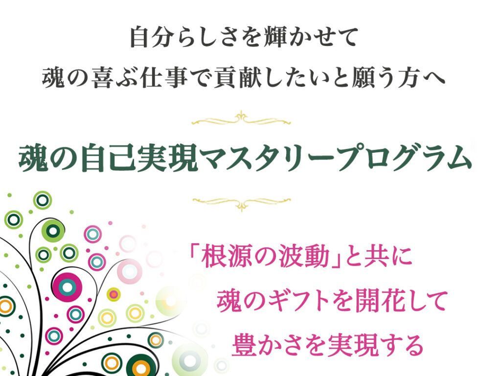 魂の自己実現マスタリープログラムは、 激動の世界にあって、私達が自分らしく 輝いて幸せに生きる上で、非常に大切な 基礎を身につけるコースです。